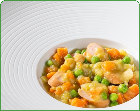 Berliner Kartoffelsuppe mit Geflügel Wiener